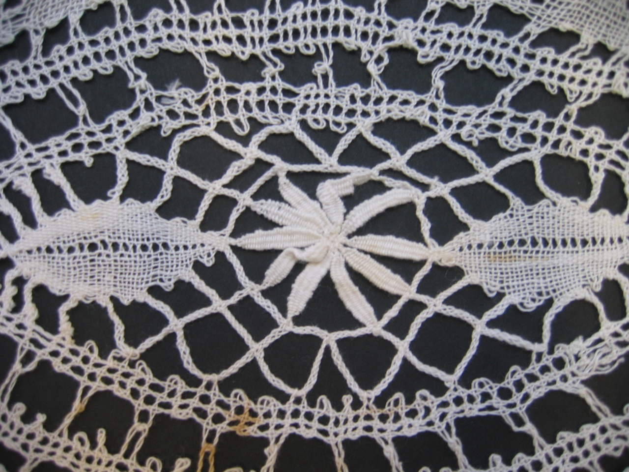 Gemaakt door Catharina Cuypers, dochter van Pierre Cuypers, geboren in 1866. Catharina was een goede vriendin van de grootmoeder van de schenkster van de handwerken. Volgens de schenkster is er kantwerk door Catharina aan haar grootmoeder gegeven bij diverse familiegelegenheden, maar ook in 1916 bij het intreden van Catharina in het klooster, toen zij geen bezittingen mee mocht nemen.