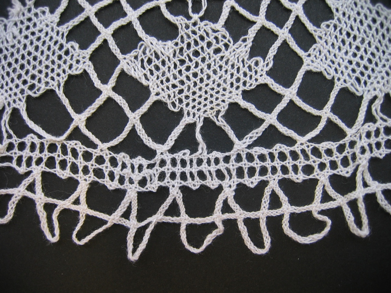 Wit ovaal gekloskant kleedje, zeer open kantwerk met kleine ster in het midden.