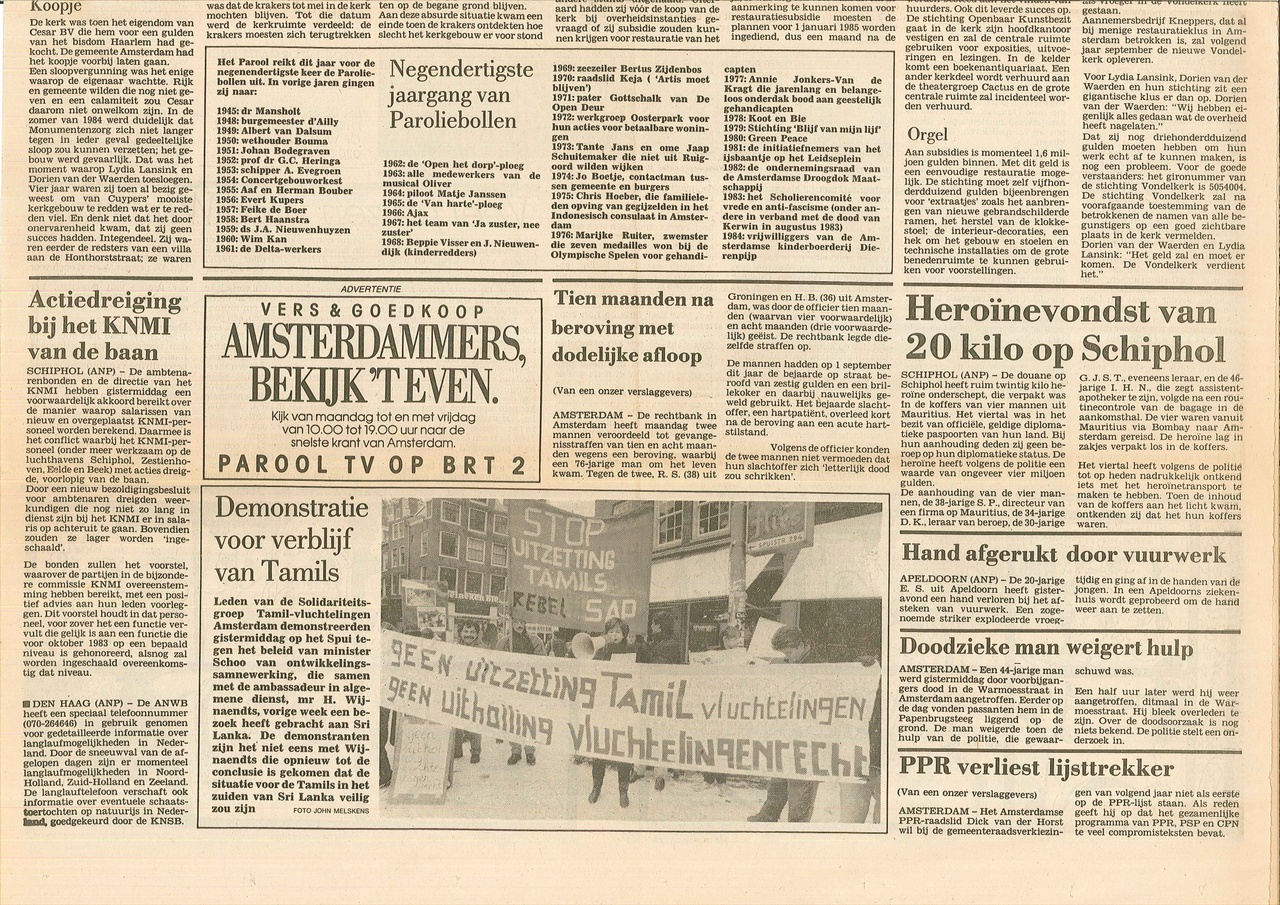 In het artikel wordt aandacht besteed aan de reddingsactie van de Vondelkerk. Op Oudjaar 1985 worden Paroliebollen (oliebollen van "Het Parool") uitgereikt aan de redders van de Vondelkerk.