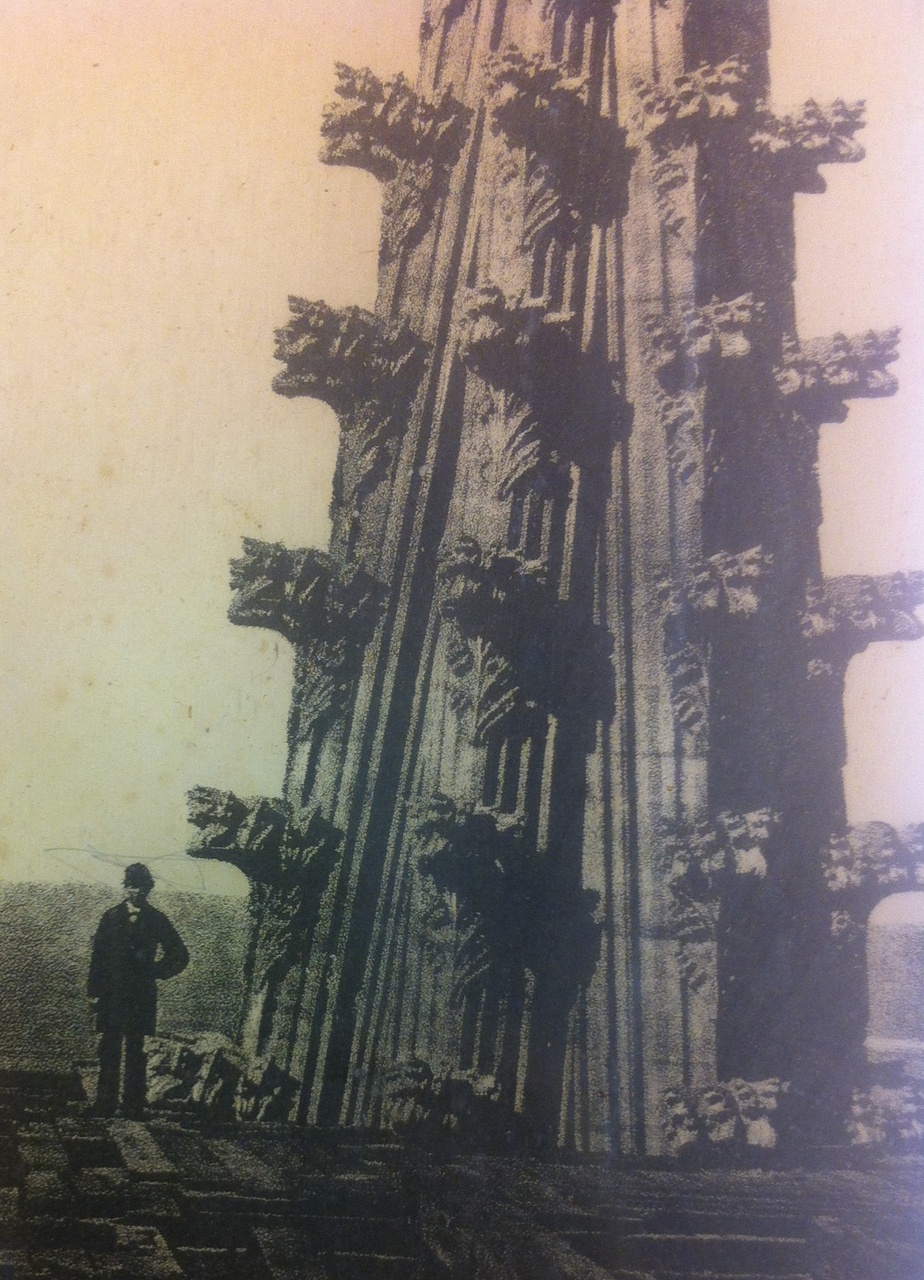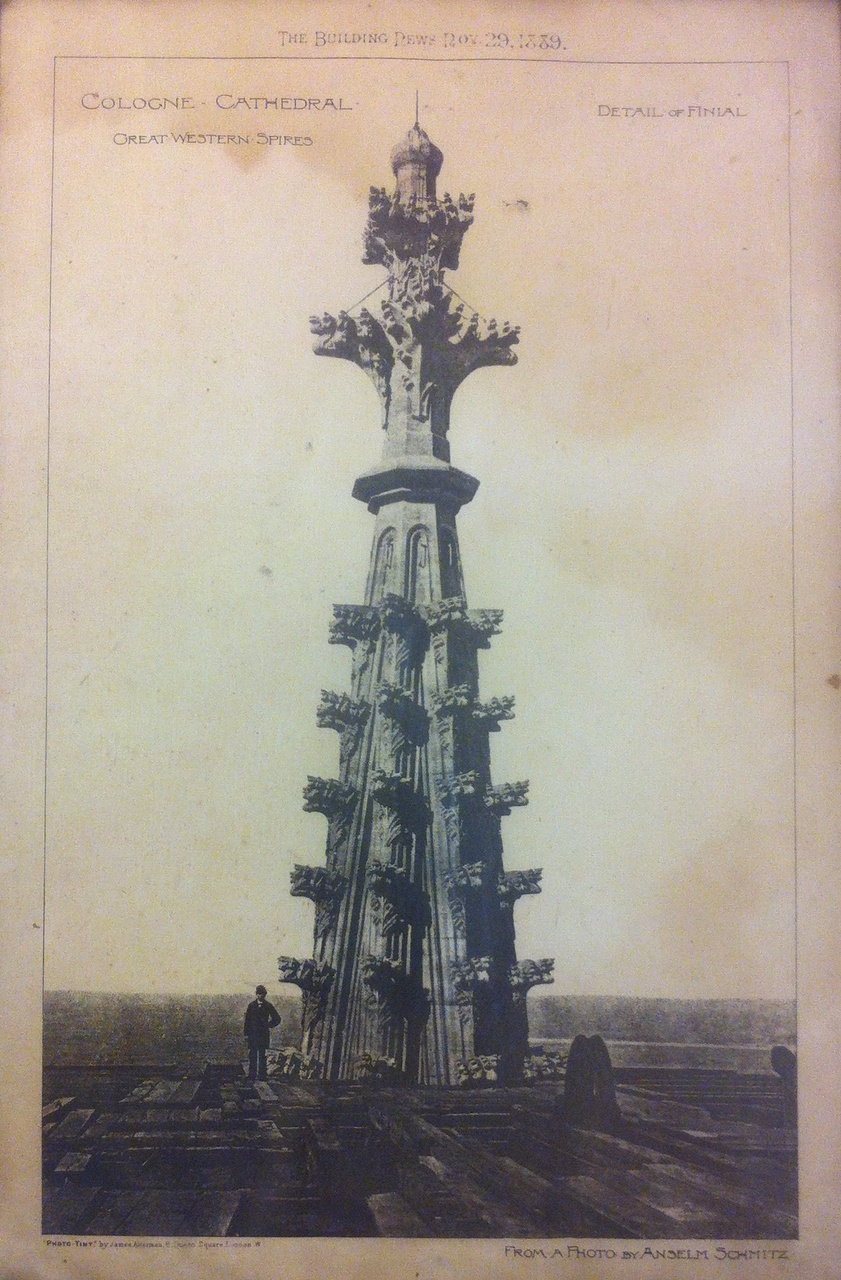 Afbeelding uit een Engels tijdschrift van een spitstoren van de kathedraal in Keulen