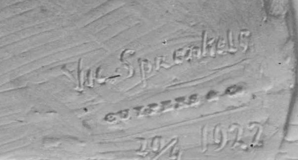 Rechtsonder op de afbeelding van Dhr. van Liebergen is de naam van de maker van de plaquette gekrast: Vic Sprenkels Cuypers&Co 20/5 1922 (of 20/4 1922). (zie foto 6574ab1)