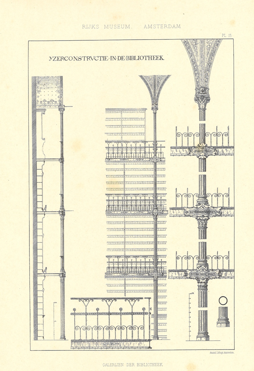 - 6652ap (Plaat 15) omvat de ijzerconstructie der galerijen in de bibliotheek.