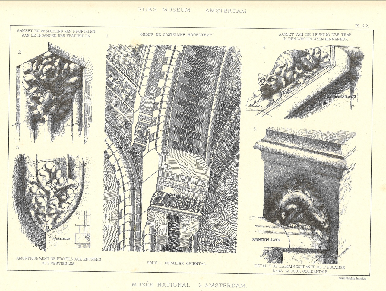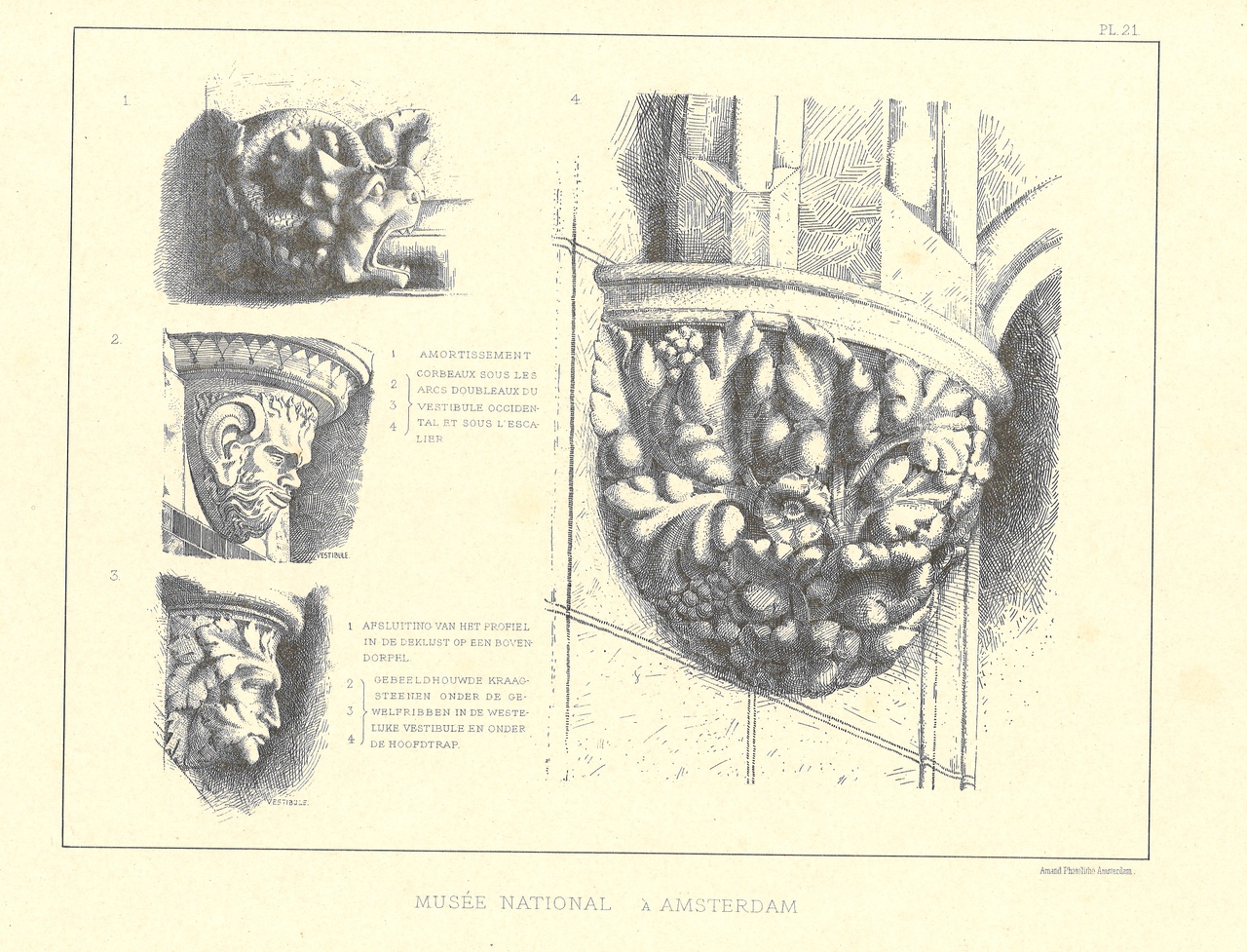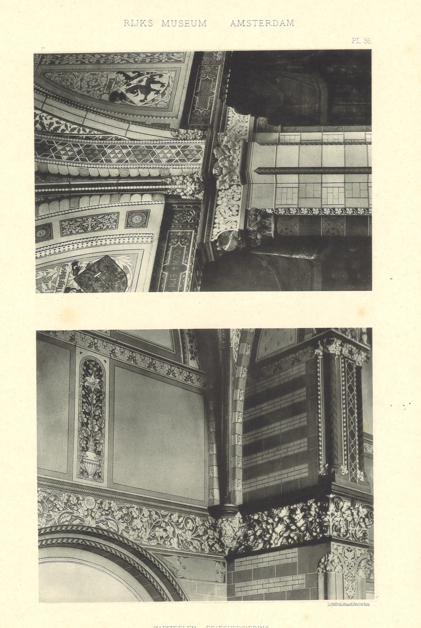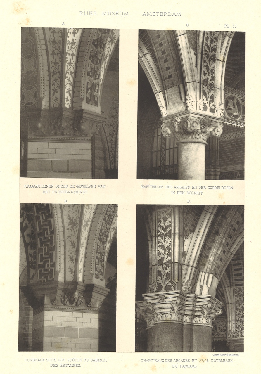 - Op Plaat 37 (6652bk) staan 4 foto's van o.a. kraagstenen onder de gewelven van het prentenkabinet en kapitelen van de arcaden en gordelbogen in de doorrit.