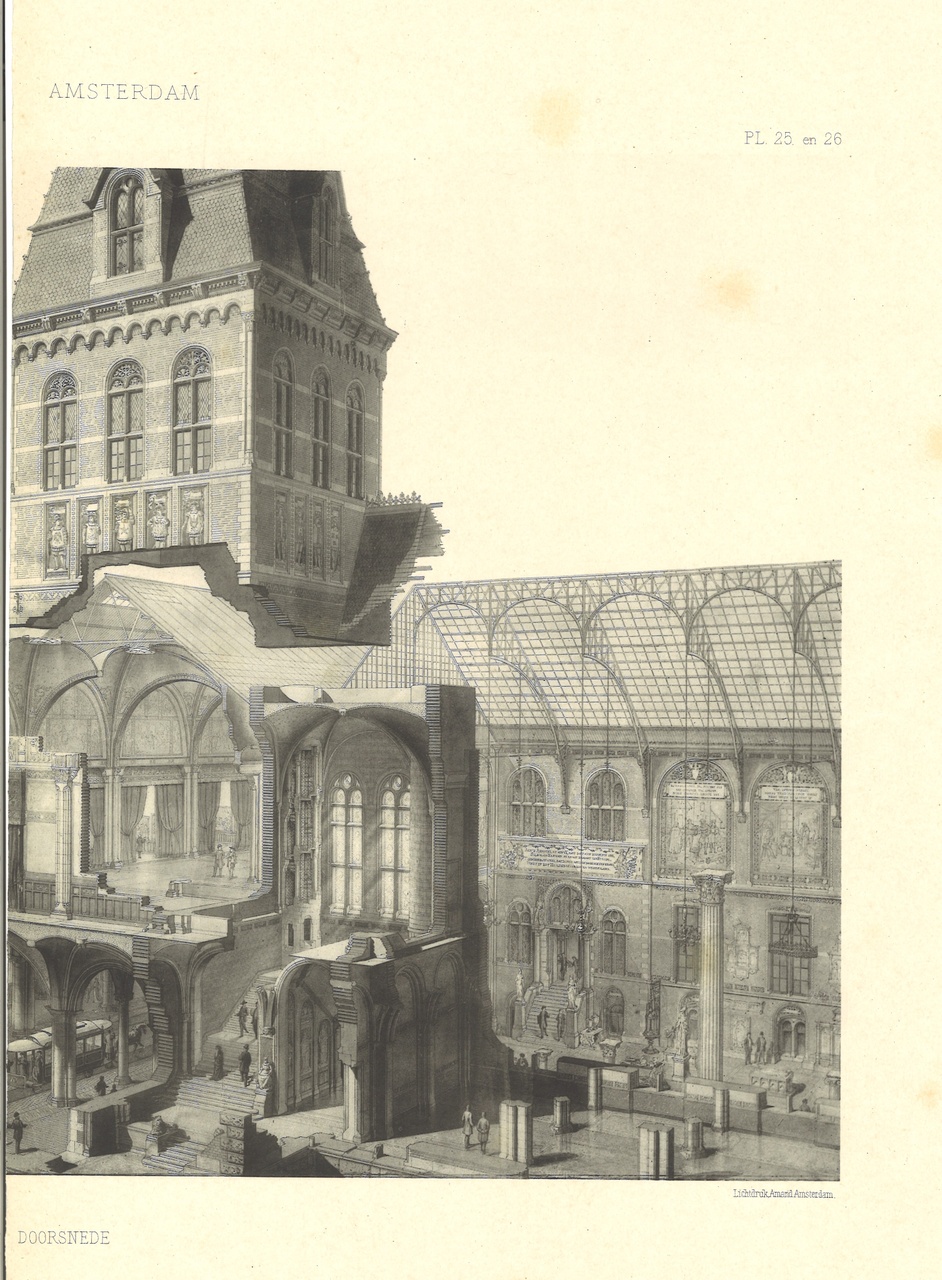 - 6652az is een dubbele plaat (Platen 25 en 26) met een perspectivische doorsnede van het museum.