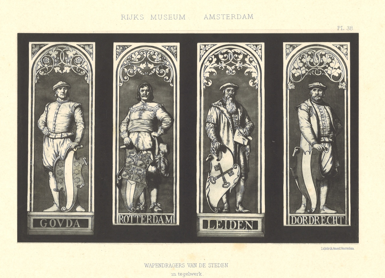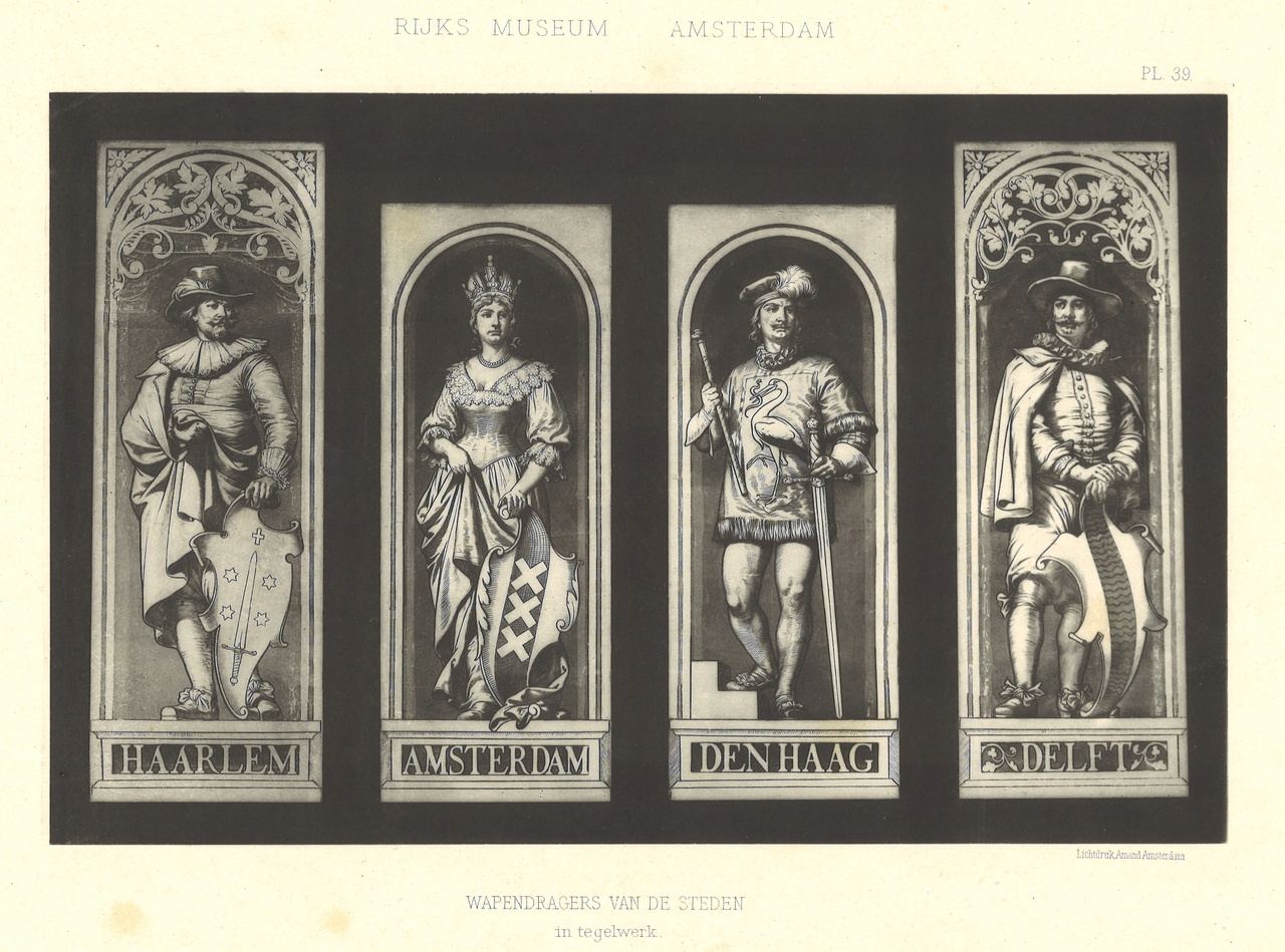- Op Plaat 39 (6652bm) staan de vier wapendragers van de steden Haarlem, Amsterdam, Den Haag en Delft.