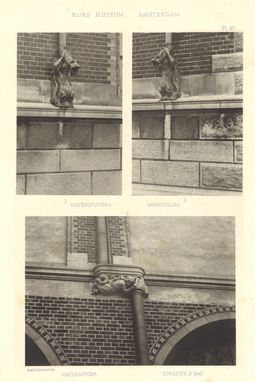 - Op Plaat 45 (6652bs) staan drie foto's van Waterspuwers en een waterafvoer.