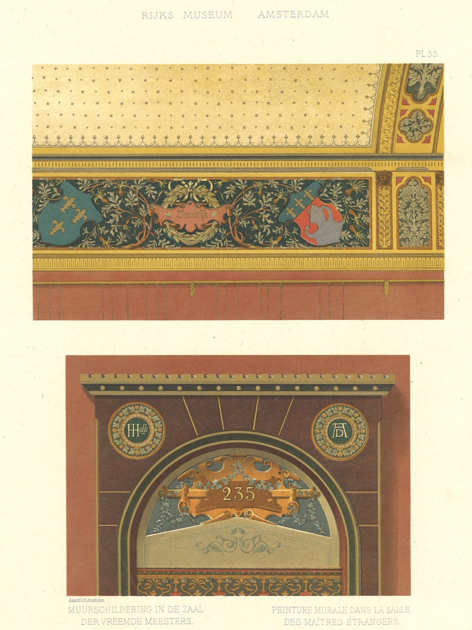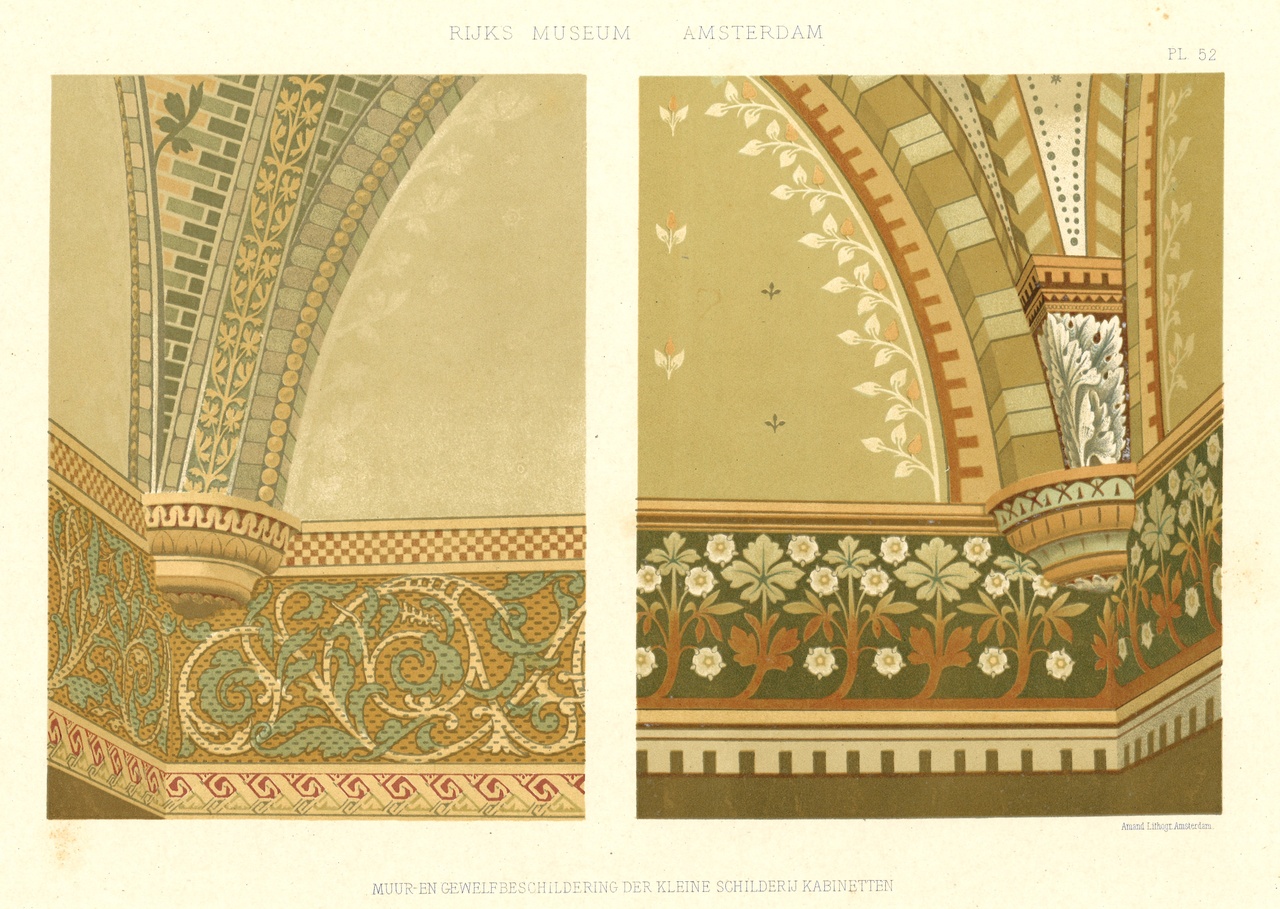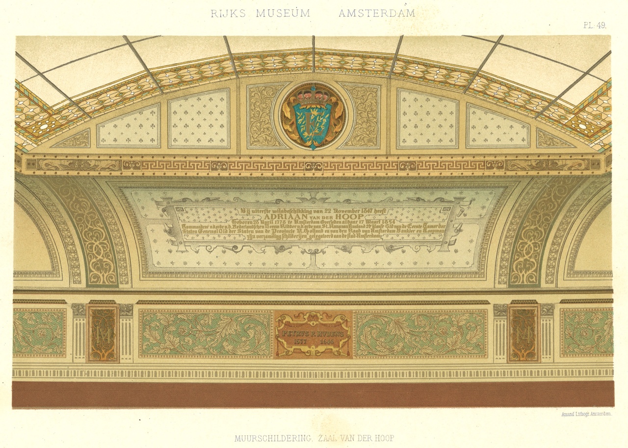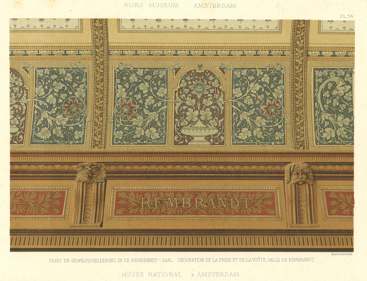 - Op 6652cb (Plaat 54) staat een kleurenprent van een fries- en gewelfschildering in de Rembrandtzaal.