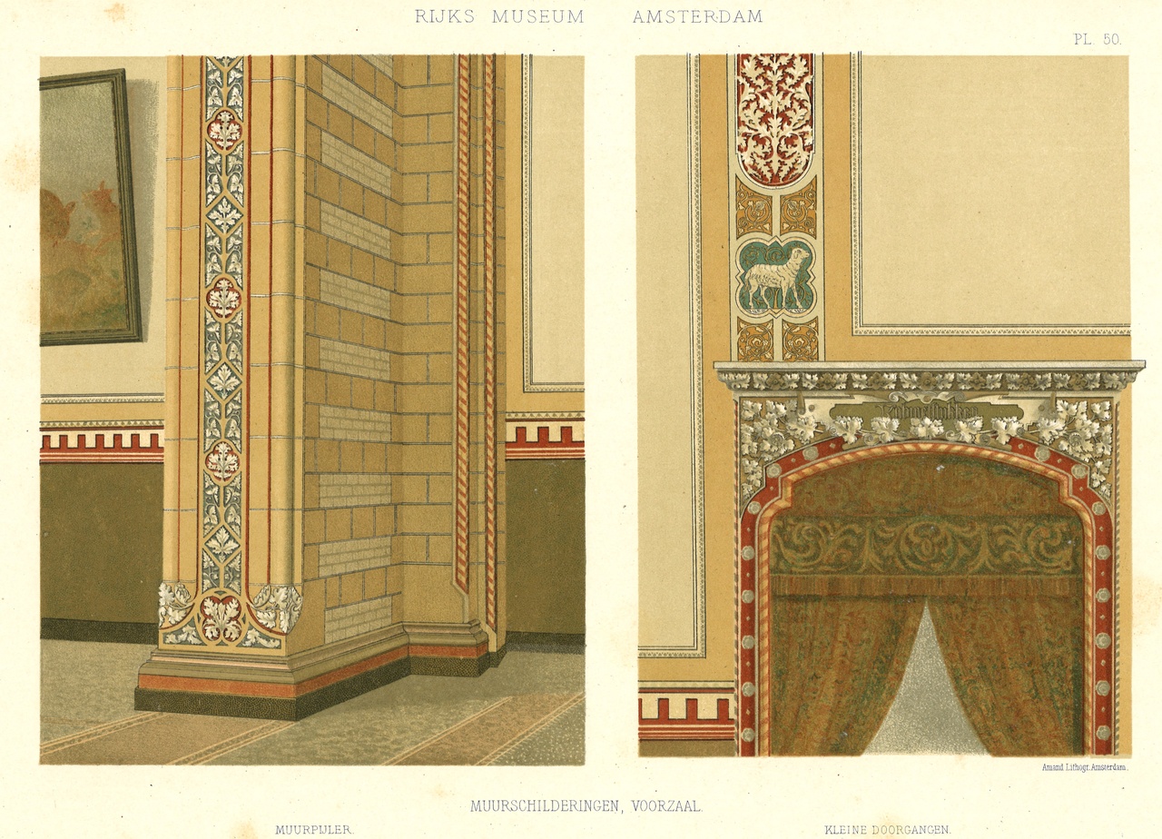- Plaat 50 (6652bx) bevat twee kleurenprenten van Muurschilderingen in de voorzaal: een van een muurpijler en een van kleine doorgangen.