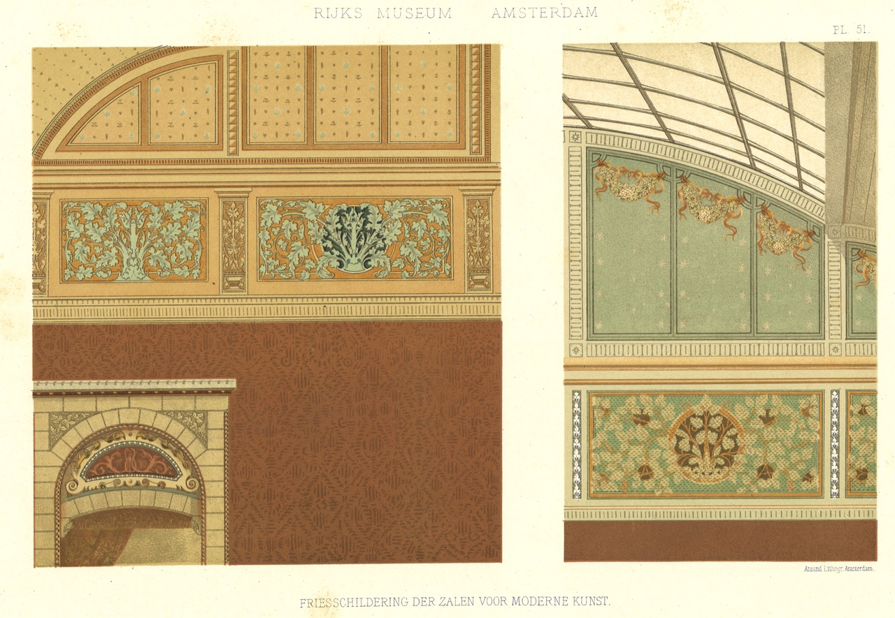 - Op Plaat 51 (6652by) staan twee kleurentekeningen van friesschilderingen van de zalen voor Moderne Kunst.