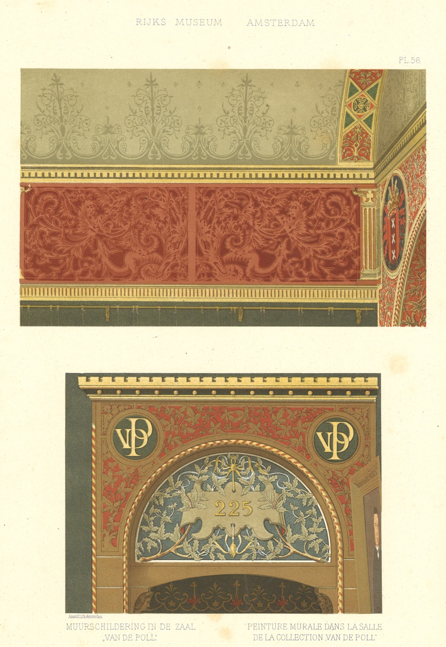 - 6652cd (Plaat 56) toont twee kleurenplaten van muurschilderingen in zaal "Van de Poll".