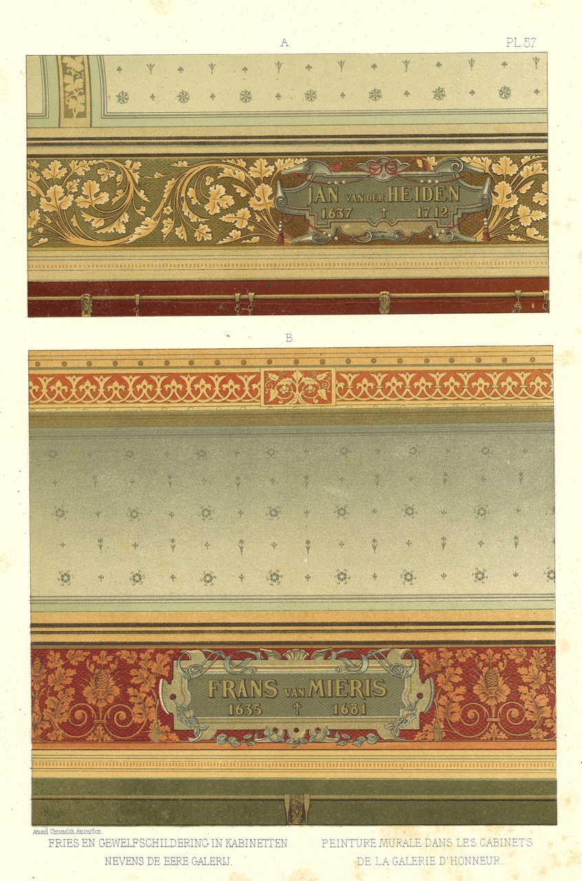 - Plaat 57 (6652ce) bevat twee kleurenprenten van fries- en gewelfschilderingen in kabinetten naast de eregalerij.