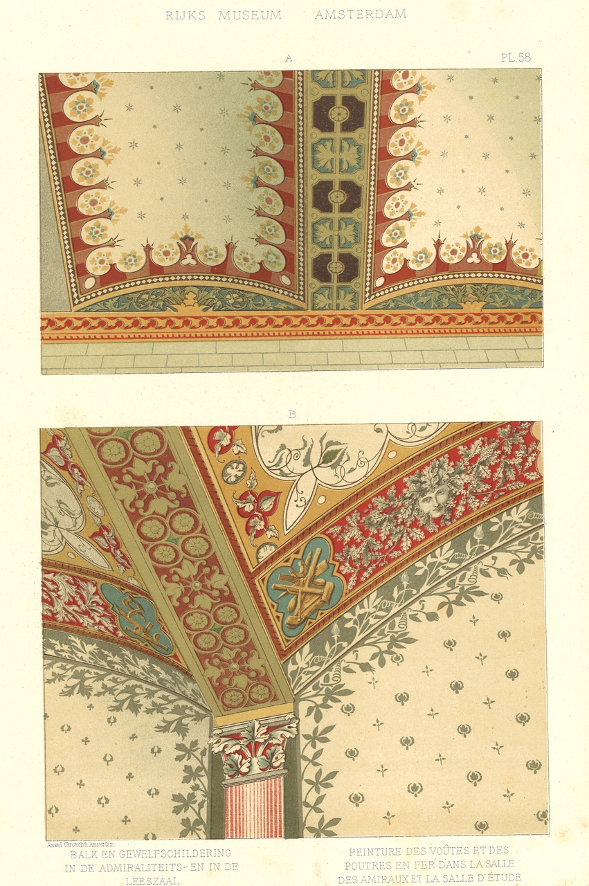 - Op 6652cf) (Plaat 58) staan twee kleurenplaten van balk- en gewelfschilderingen in de admiraliteits- en in de leeszaal.