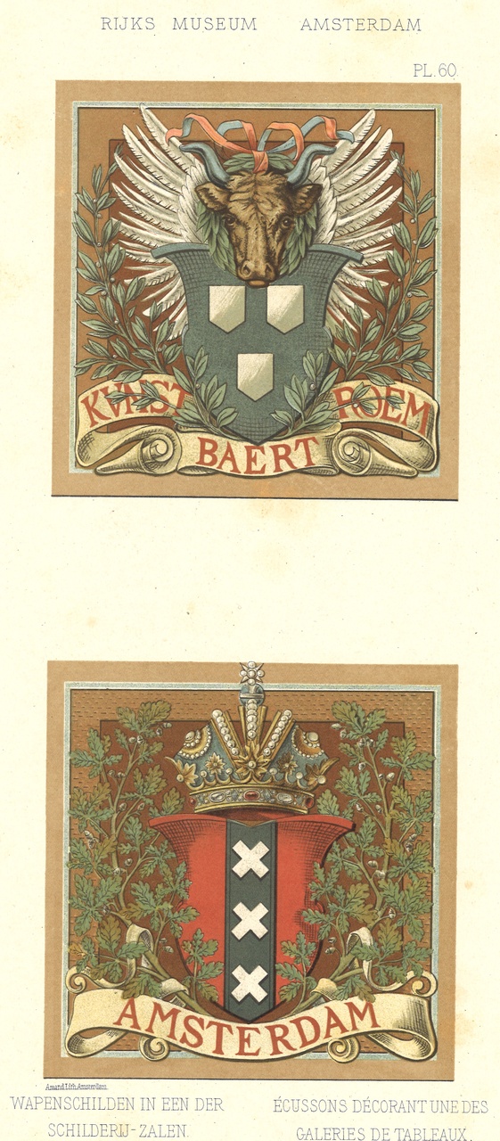 - Op Plaat 60 (6652ch) staan twee wapenschilden in kleur afgebeeld: een van het Amsterdamse wapenschild van het Sint Lucasgilde (een runderkop omgeven met veren boven een schild met drie vijfhoeken, met daaronder de tekst "Kunst Baert Roem") en een gekroond wapen van de stad Amsterdam.