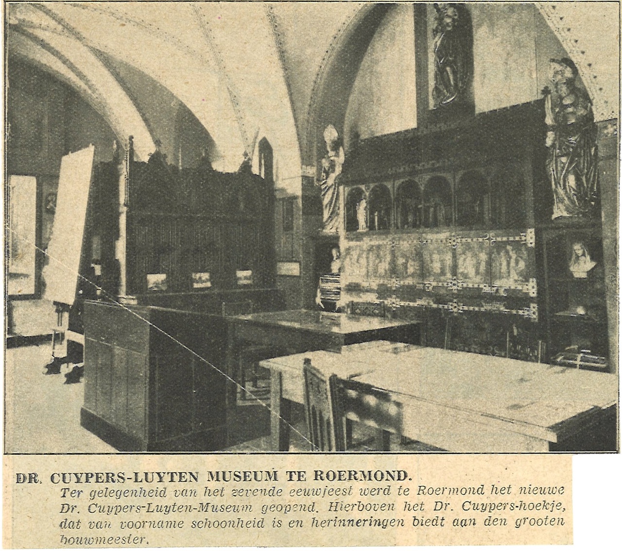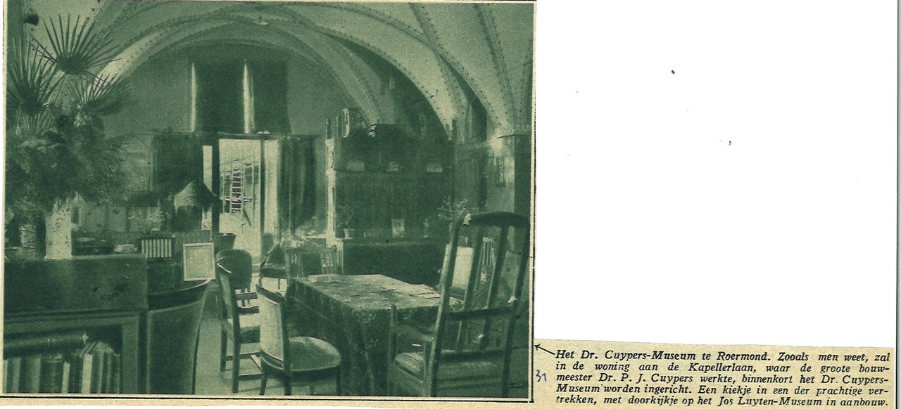 Map met foto's en ansichtkaarten gerelateerd aan het Cuypershuis te Roermond: mapje 6693y met krantenknipsels
