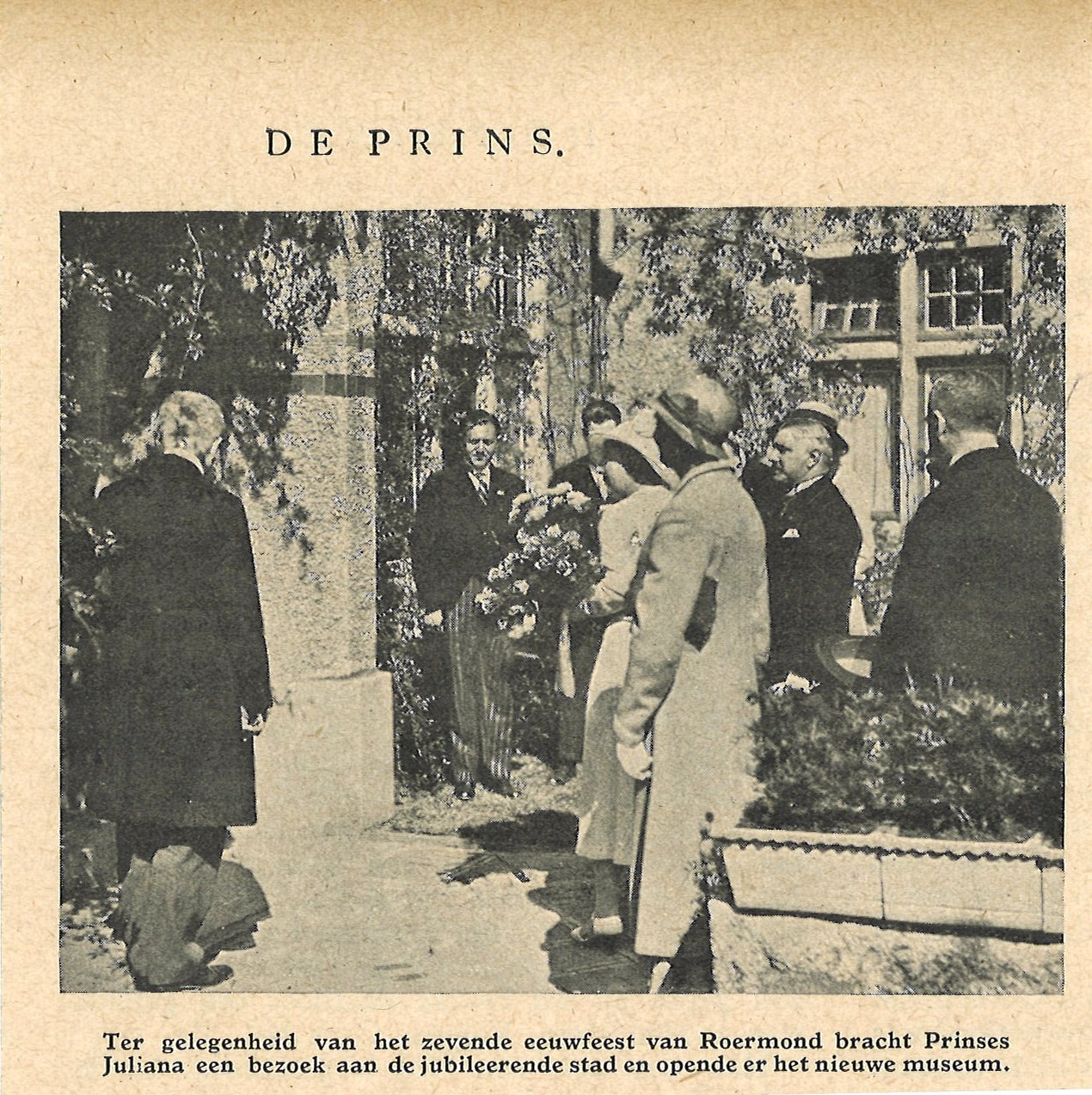 6693y8 is een krantenfoto van de aankomst van Prinses Juliana bij het museum vóór de opening.
