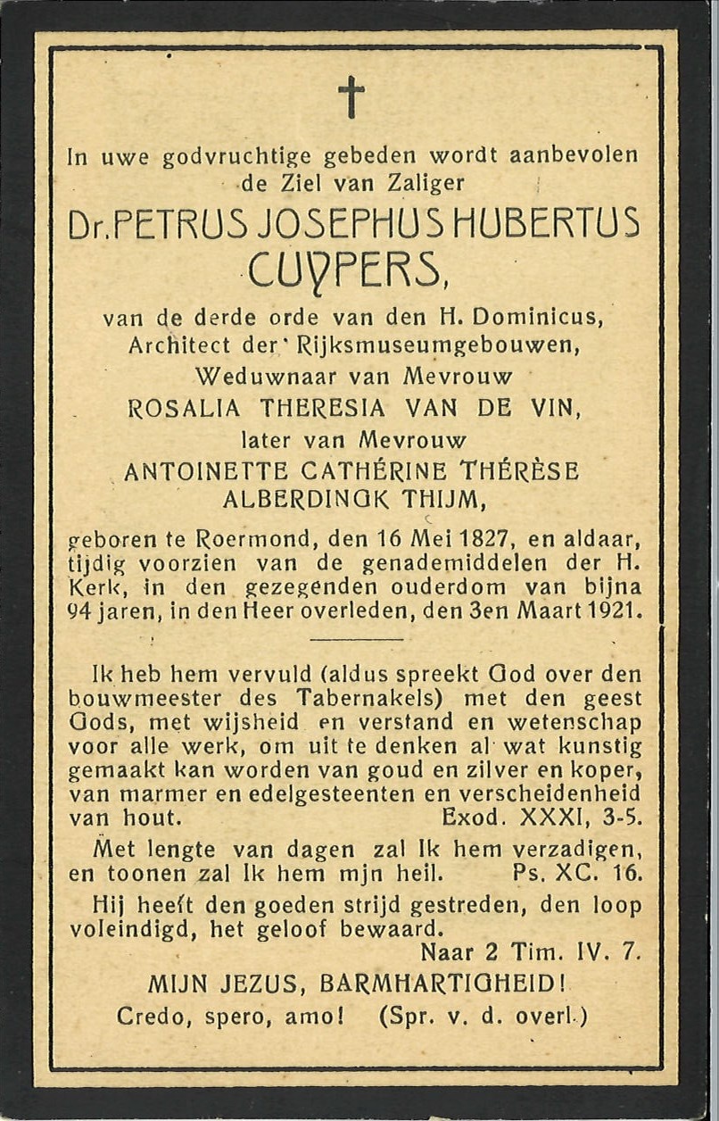 Bidprentje van Pierre Cuypers