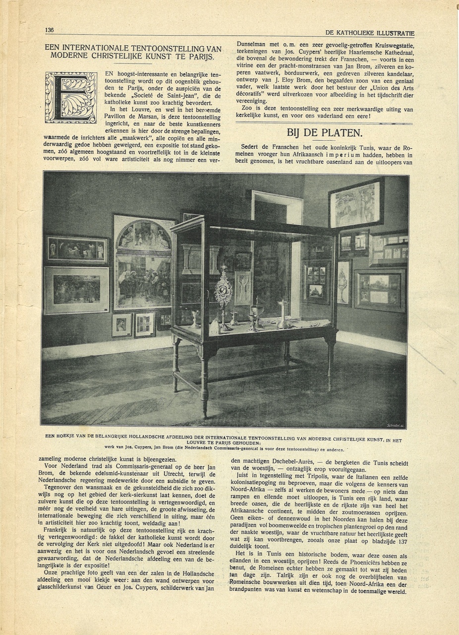 - Op 6750-06 staat een artikel van een halve pagina over een tentoonstelling van moderne christelijke kunst in Parijs met een foto van de Nederlandse inzending met o.a. tekeningen van Jos Cuypers van de Haarlemse St. Bavo-kathedraal.