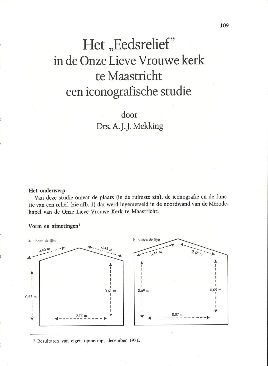 Bij het reliëf behoort een boekje "Het "eedsreliëf" in de O.L.V. kerk te Maastricht" door drs. A.J.J. Mekking uit 1973. De foto's met de nrs. 6752a-1 t/m 6752a-6 zijn afdrukken van de eerste zes pagina's van dit boekje.