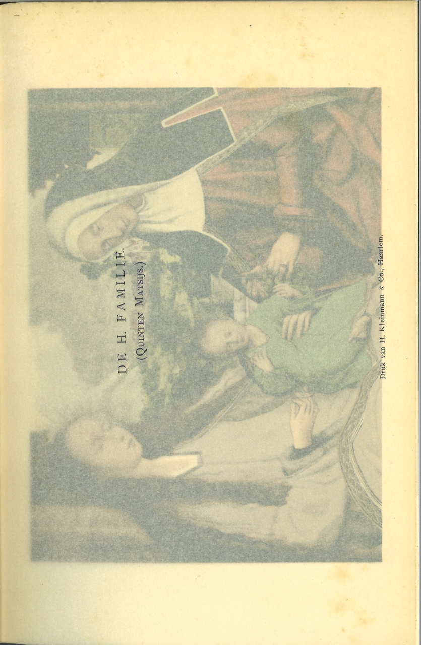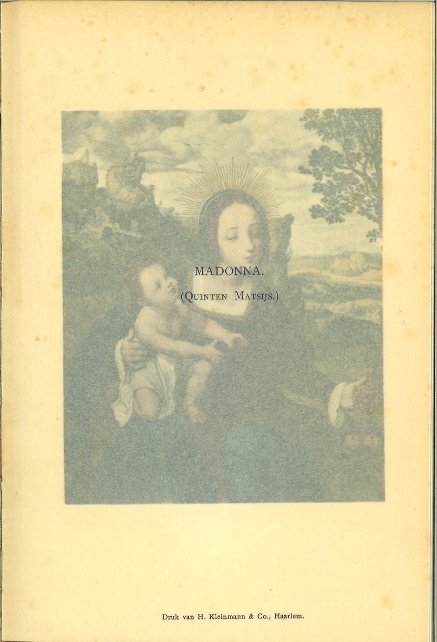 Er zijn enkele illustraties geselecteerd. Foto 6761d-2 toont "De H. Familie' van de hand van Quinten Matsijs en foto 6761-c geeft ""Madonna"van Quinten Matsijs weer.
