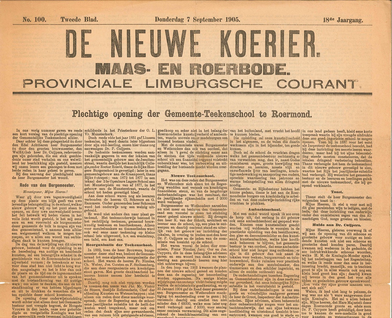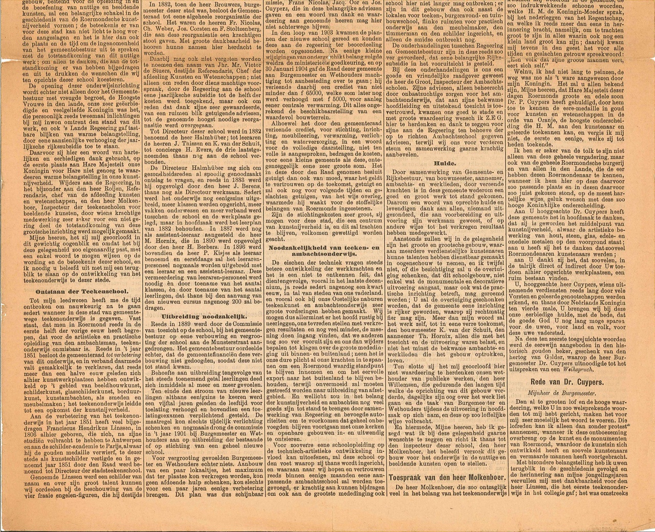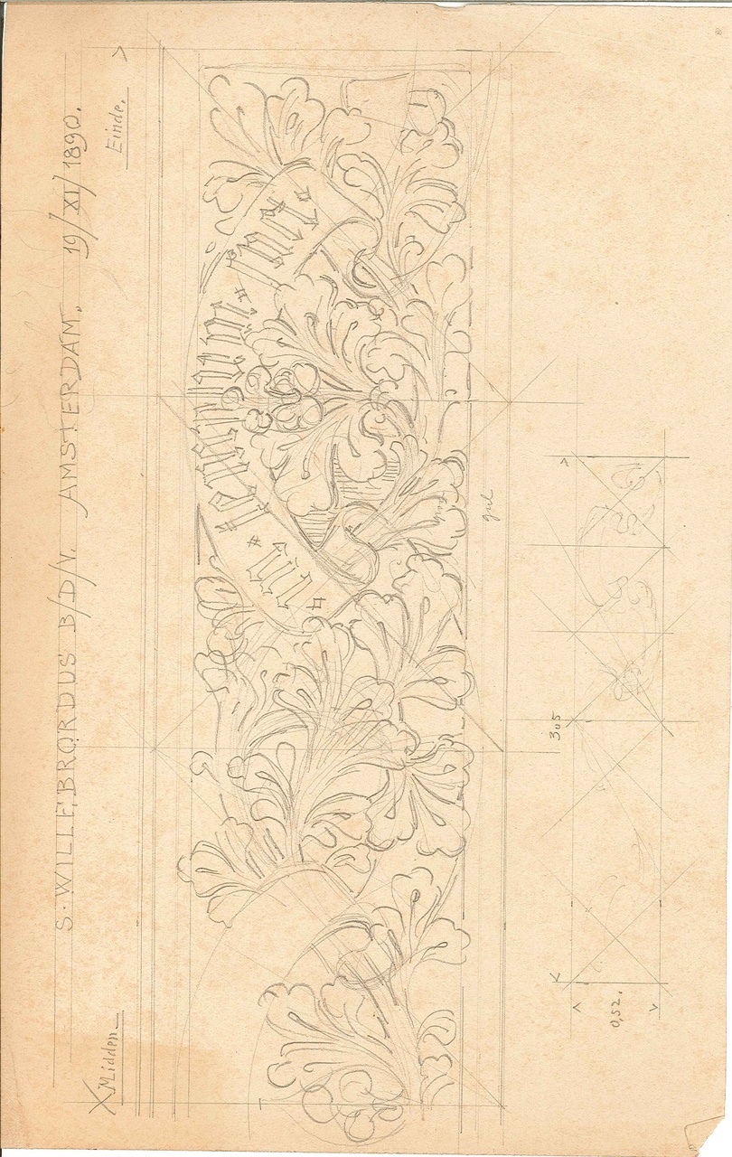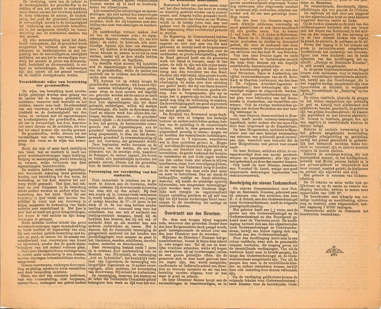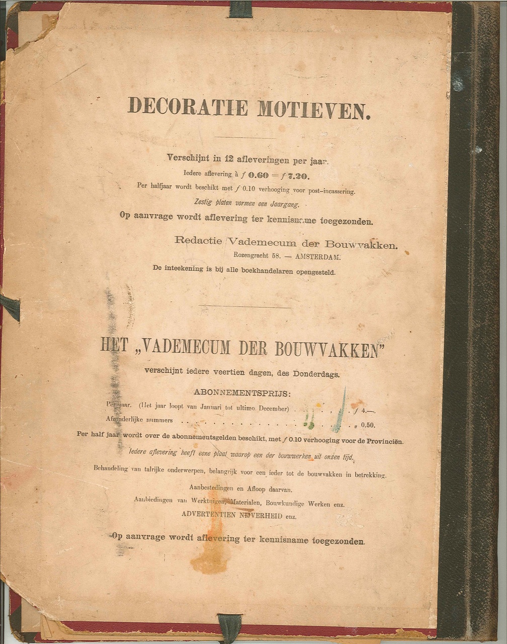 De verzamelmap(BR 0437a) met op de voorkant gedrukt: "Decoratie Motieven, 1ste Aflevering, 3de Jaargang", bevat een ontwerpschets (BR 0437a-2), een krantenartikel over de opening van de Teekenschool (BR 0437a-3 t/m -6), een krantenartikel over "150 jaar Pieter Cuypers"(BR 0437a-7 en -8) en een catalogus van "Beelden, Koperwerk, Zilverwerk, Kasuifels etc. (BR 0437a-9 en -10).