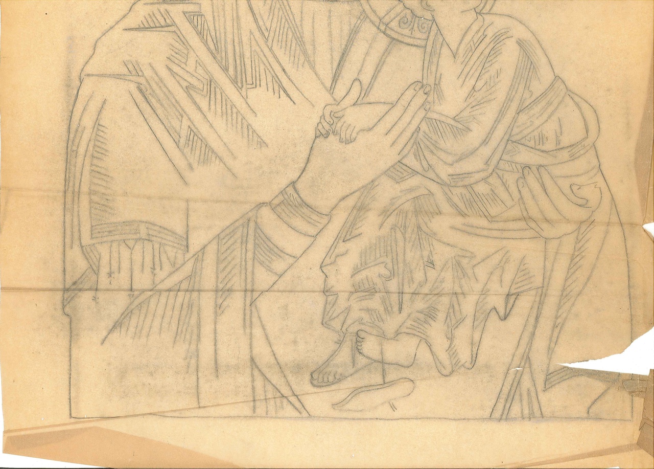 Ontwerp voor een Maria met kind op transparant papier in Byzantijnse stijl