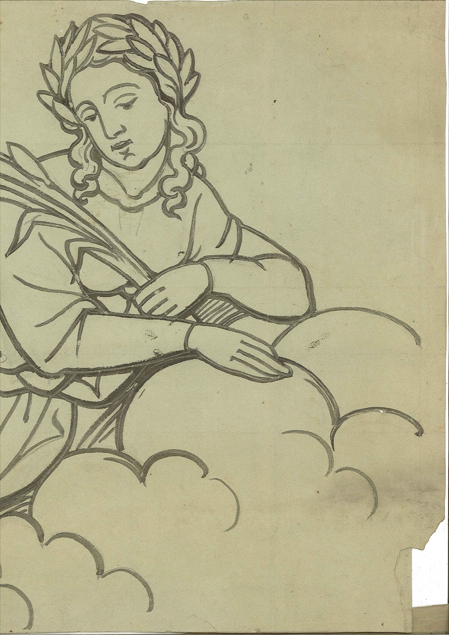 Op de ontwerptekening staat een jonge vrouw afgebeeld. In haar handen houdt ze een palmtak. Met potlood staat op de tekening geschreven: Maagd augustus.