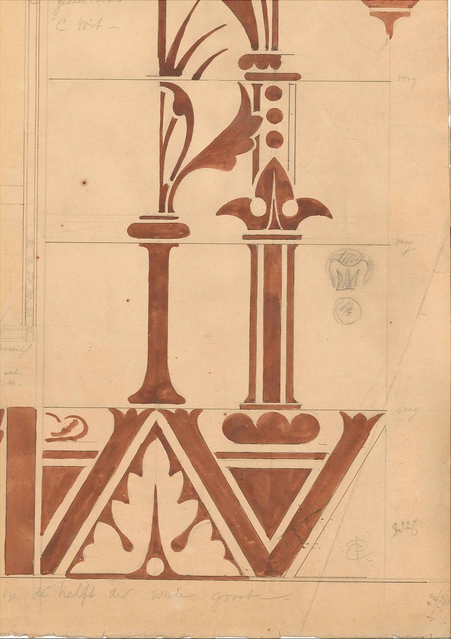 rechtsonder: geschreven: monogram van Pierre Cuypers / potlood