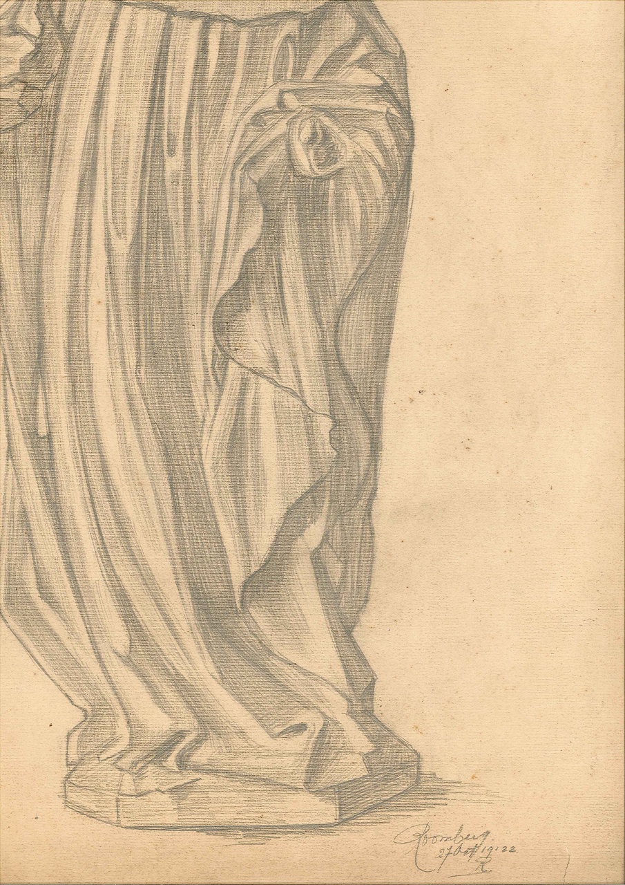 Op de tekening is een staande geestelijke afgebeeld. Rechtsonder met potlood de signatuur: Roomberg, 27 Oct. 1922, R.