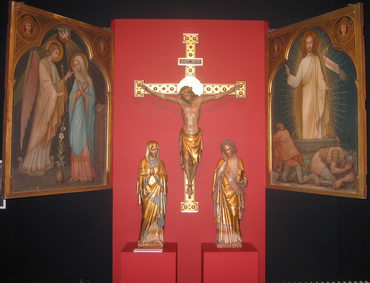 Het altaar kon met twee beschilderde luiken afgesloten worden. Het geheel bestond uit een zestal gebeeldhouwde luiken, die afhankelijk van de kerkelijke feestdagen geopend dan wel gesloten werden.